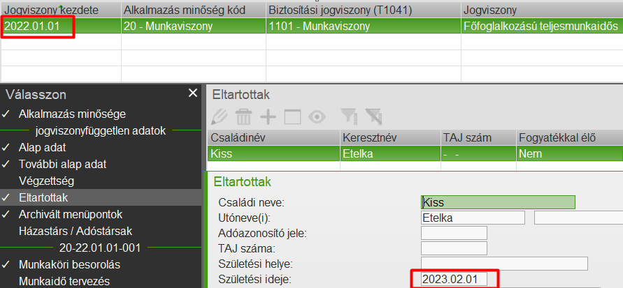 Abban az esetben, ha a gyermek születésekor még nem áll fenn legalább egy éve a munkaviszony, akkor a szülői szabadságra való jogosultság csak akkor nyílik meg, hogy a munkaviszony elérte az egy éves időtartamot. Vagyis ha pl. a munkaviszony kezdete 2022.07.01, és a gyermek születése 2023.02.01., akkor csak 2023. júliustól van lehetősége a dolgozónak szülői szabadságot kivenni. Ebben az esetben is figyeli a program a jogosultság megnyílását, és az adott havi adatba belépve (jelen példában a 2023. július) generálja le a járó szülői szabadságos napokat, és a hónapban már rögzíthető szülői szabadság.