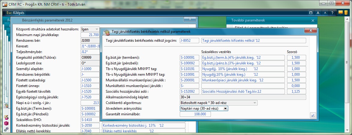 További feltétel abban az esetben, hogy a tag a minimális járulék fizetését itt kell végrehajtani és a Számfejtés paraméterek / Tagi járulékfizetés paraméterekben a Jövedelem arányosítás: Naptári nap (30-ad rész) szerepeljen.