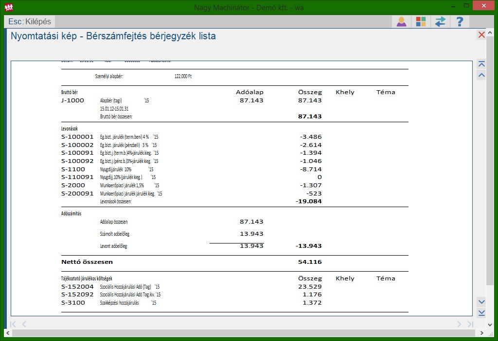 Jövedelemkivét (bruttó bér) megállapítása: 122.000 / 21 * 15 = 87.143 Ft