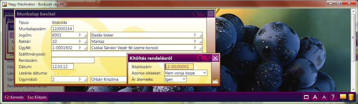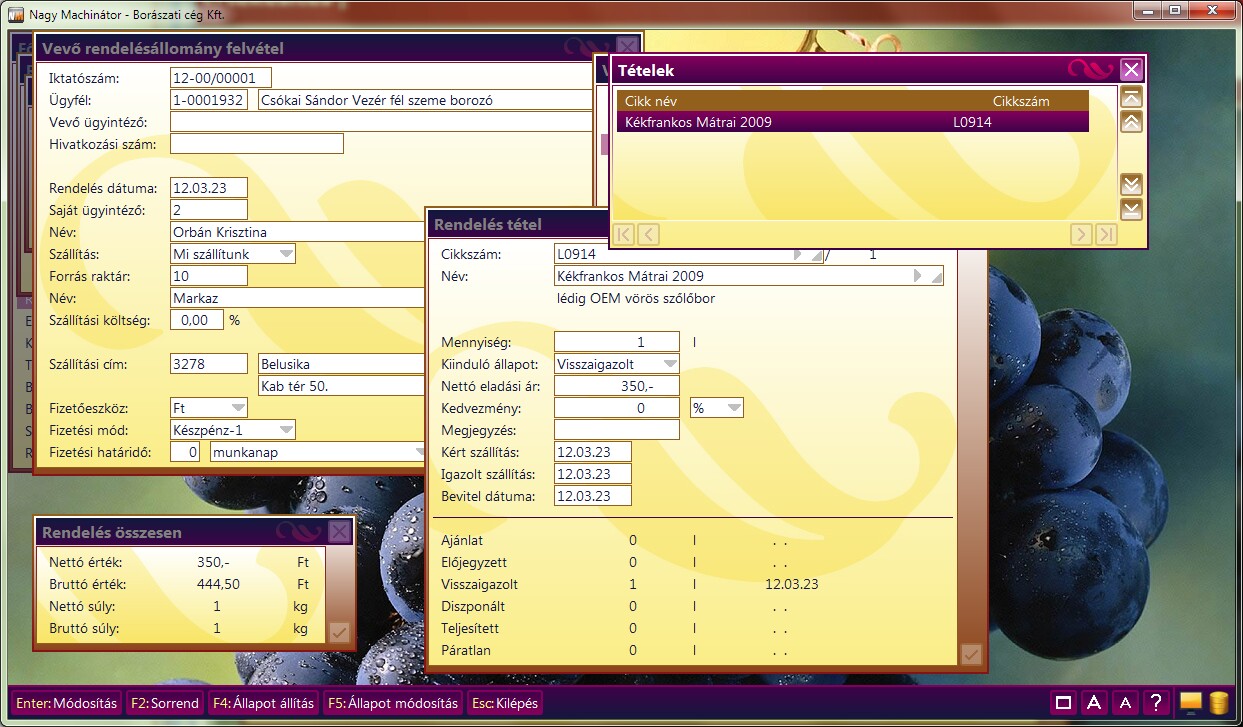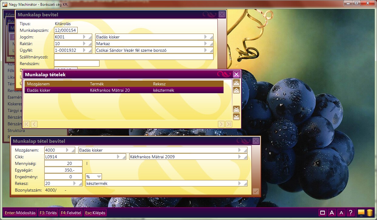 Az alábbiakban a Borászati modulban történt értékesítést írjuk le.
