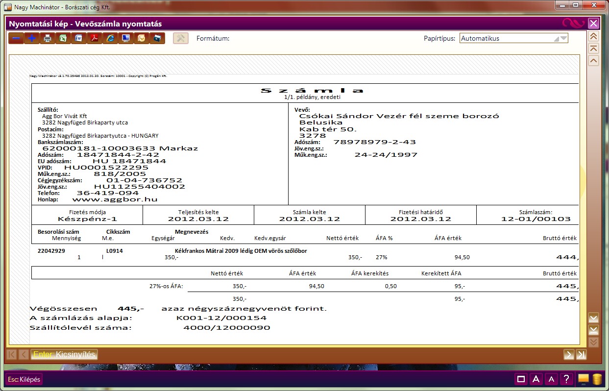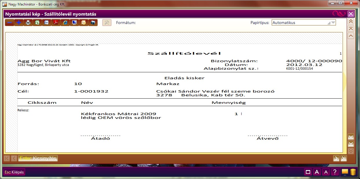 Lezárás után szállítólevelet és számlát nyomtat a program.