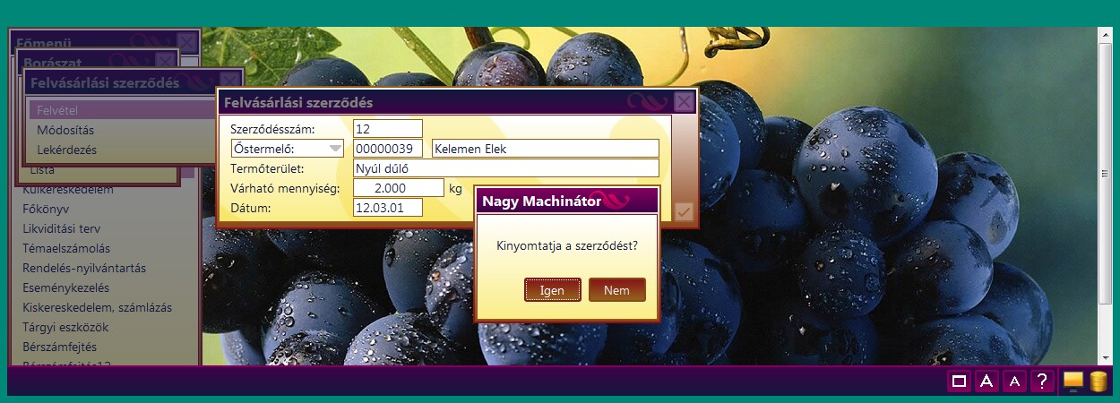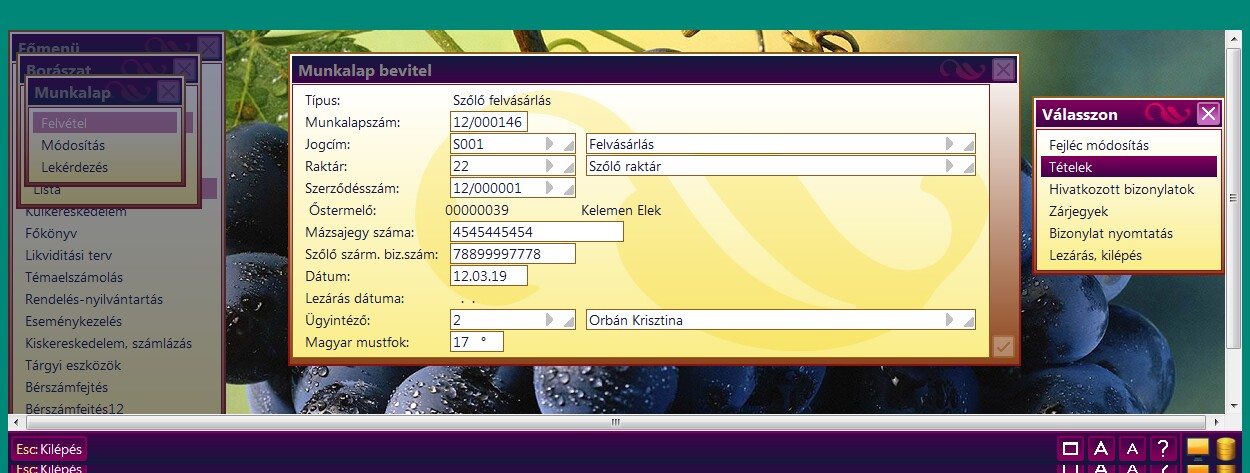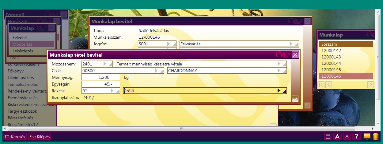 Alábbiakban a Borászáti modul Szőlőfelvásárlás munkafolyamat olvasható.