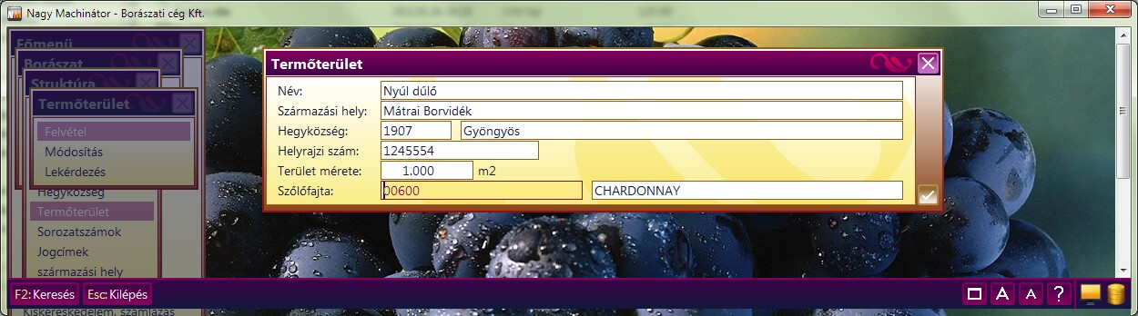 A termőterület meghatározza, hogy melyik Hegyközségen, milyen Szőlőfajtát termel az Őstermelő (vagy Ügyfél).
