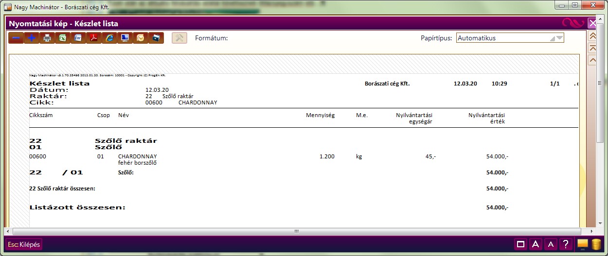 A munkalappal felvésárolt szőlő a Készlet modulban is azonnal lekérdezhető lesz.