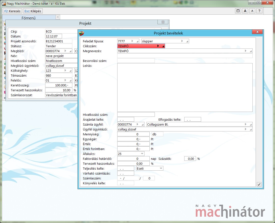 Paraméter: Cég: A paraméter értékébe a cég azonosító kell írni. Ez alapján készül a projekt kód.