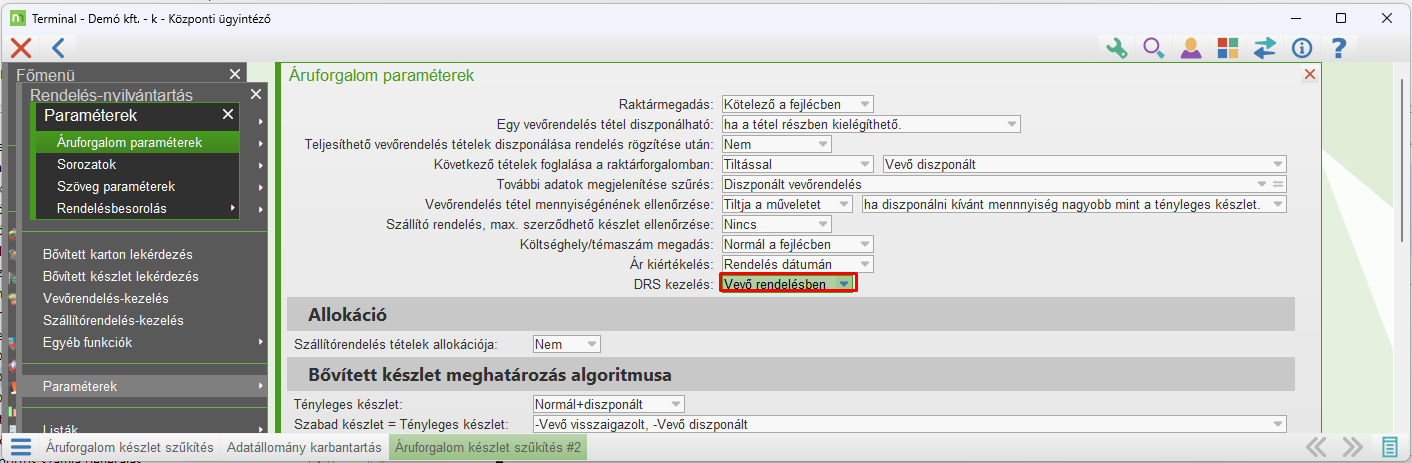 Amennyiben az Áruforgalom paraméterekben a DRS kezelés aktiválálva van (lásd paraméterezés) a következők szerint működik a DRS tételek rögzítése a programban.