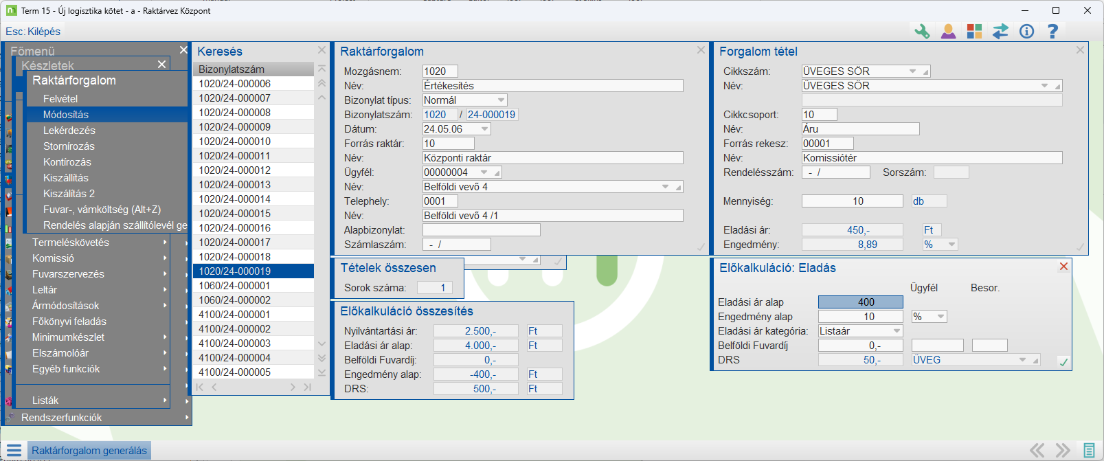 Amennyiben a szállítólevélben aktiválva van az Előkalkuláció, a következők szerint működik a szállítólevél.