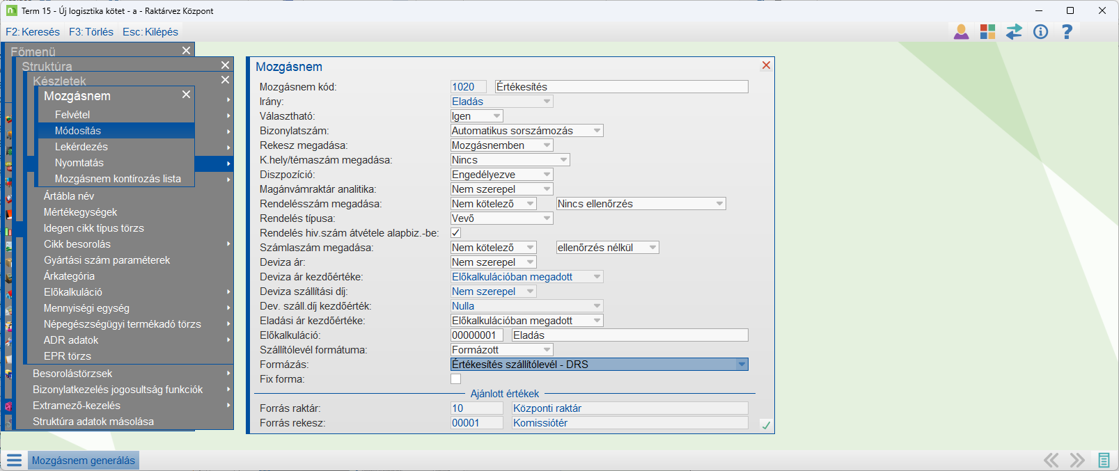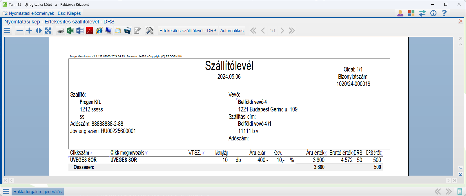 A Komissió generálás a DRS tételt külön tételként veszi fel a szállítólevélre. Használata esetén a DRS tétel az ún soha ki nem fogyó rekeszből lesz kiírva.