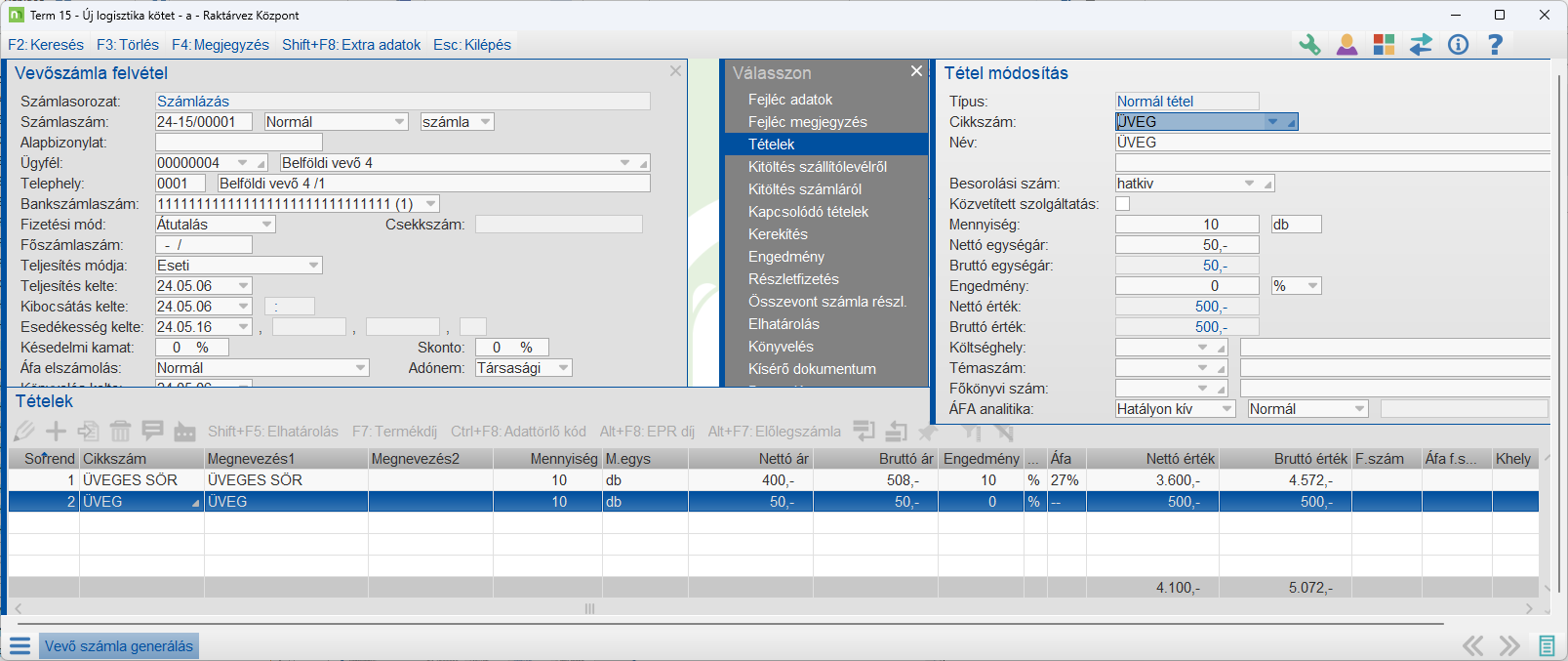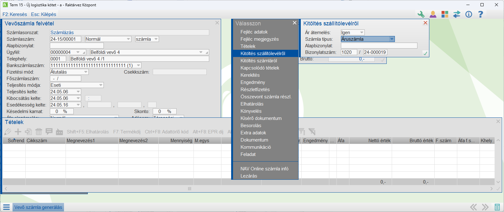 A két tétel adatállomány szintenössze lesz kapcsolva egymással, annak érdekében, hogy a logisztikai folyamatokban együtt kezelje a program. (VevőRTétel.DRS...)