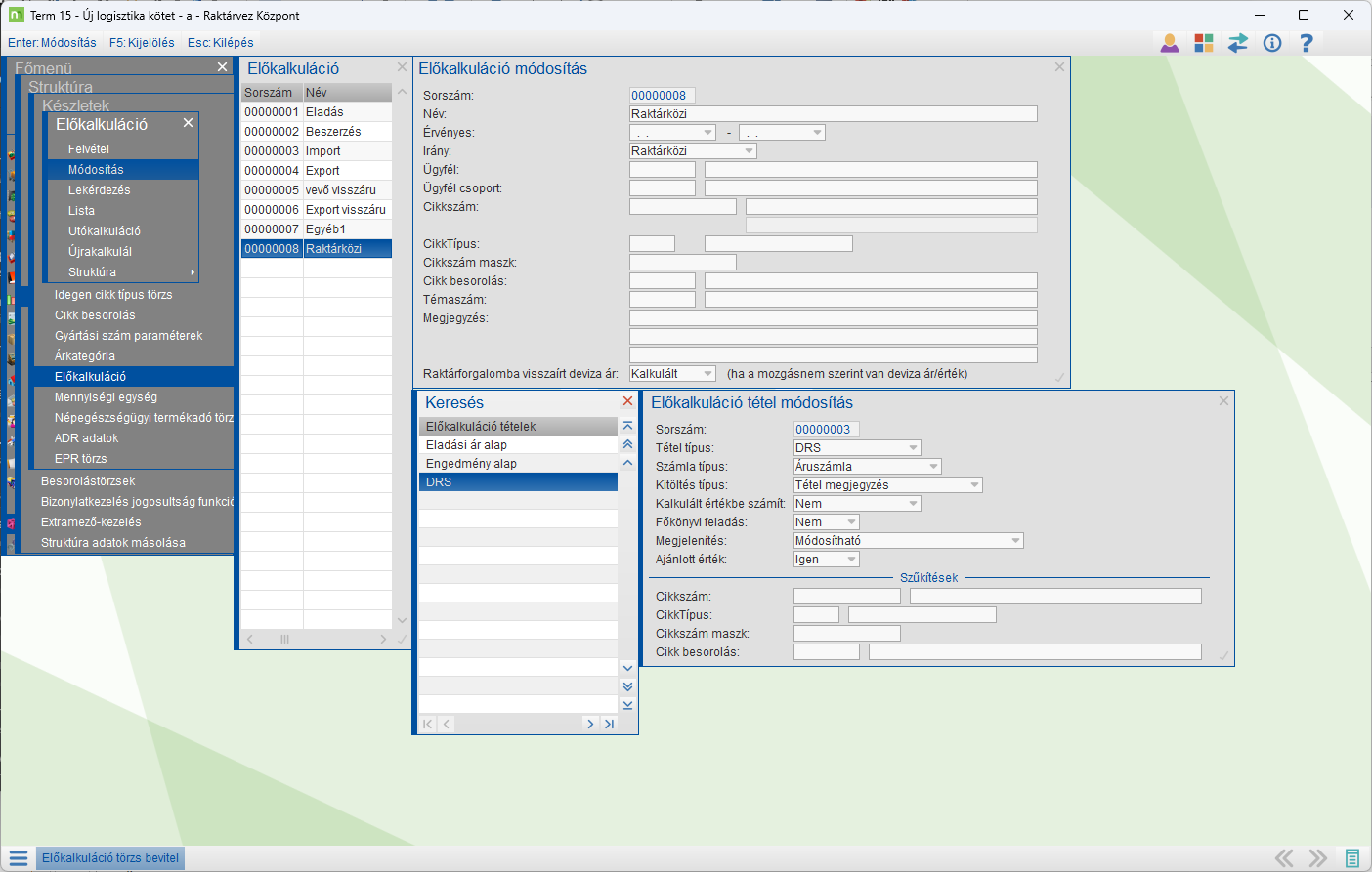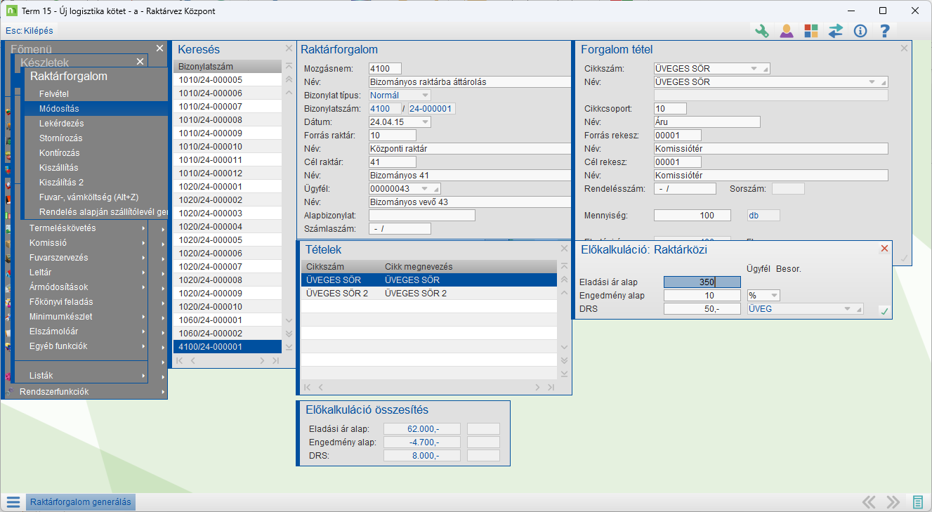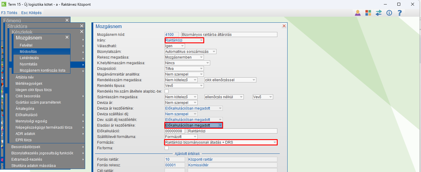 Raktárközi mozgás esetén az áru nyilvántartási értéken mozog (a beállított nyilvántartási ár alapján), az érték a fentiek alapján tartalmazni fogja a DRS értékét is.