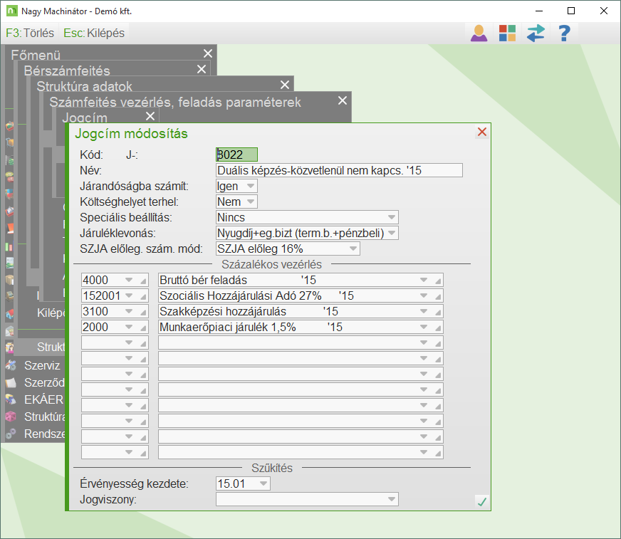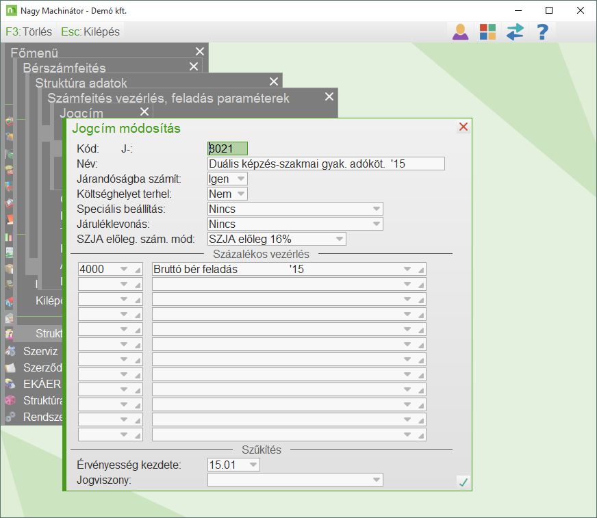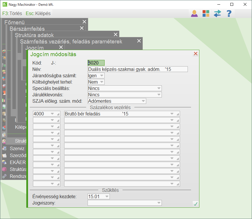 A megfelelő jogcímeket fel kell venni a Havi adatban Bérelemként.