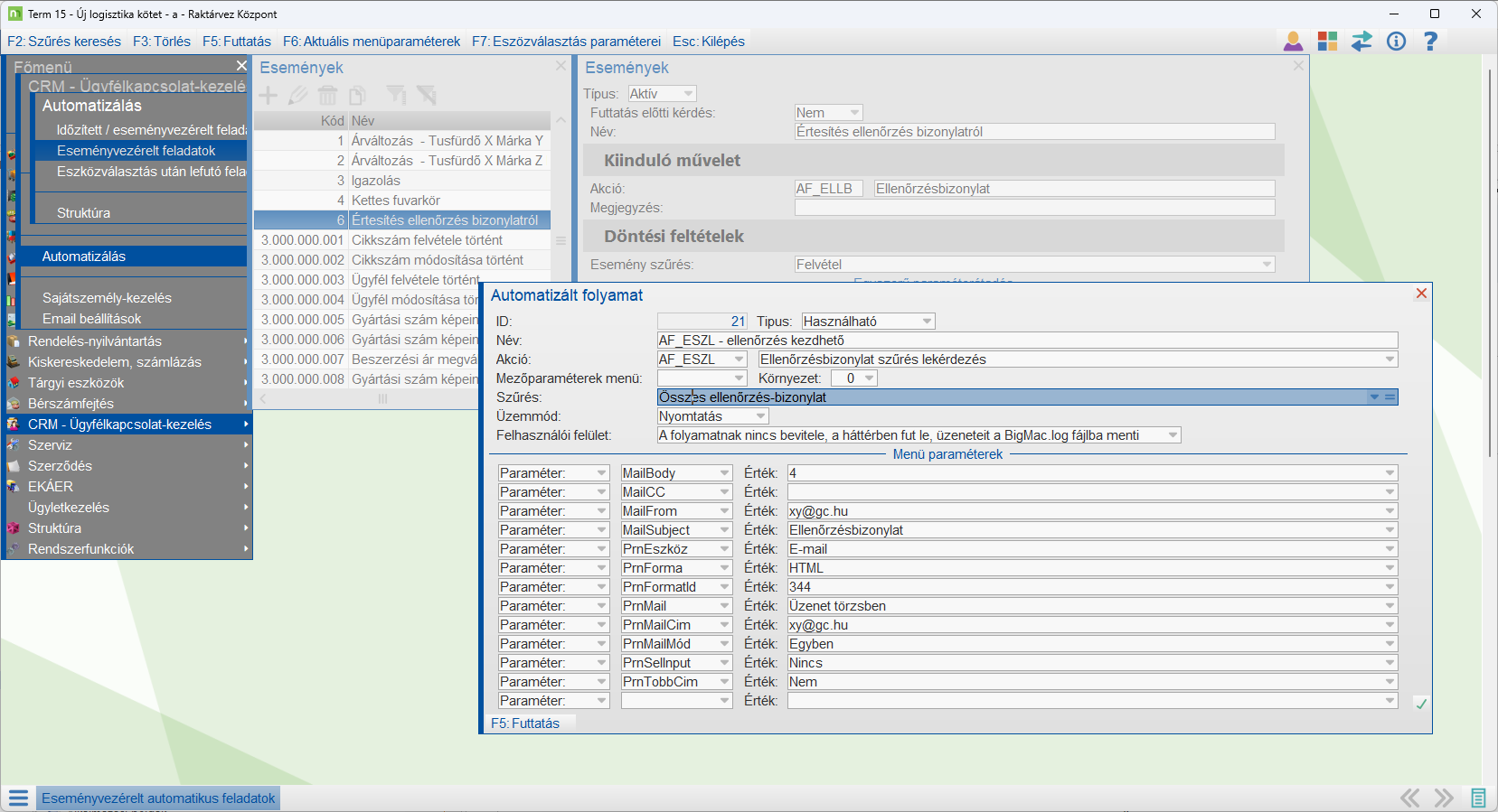 Az az igény, hogy az ellenőrzés bizonylat létrejöttéről küldjön emailben értesítést a felhasználónak.