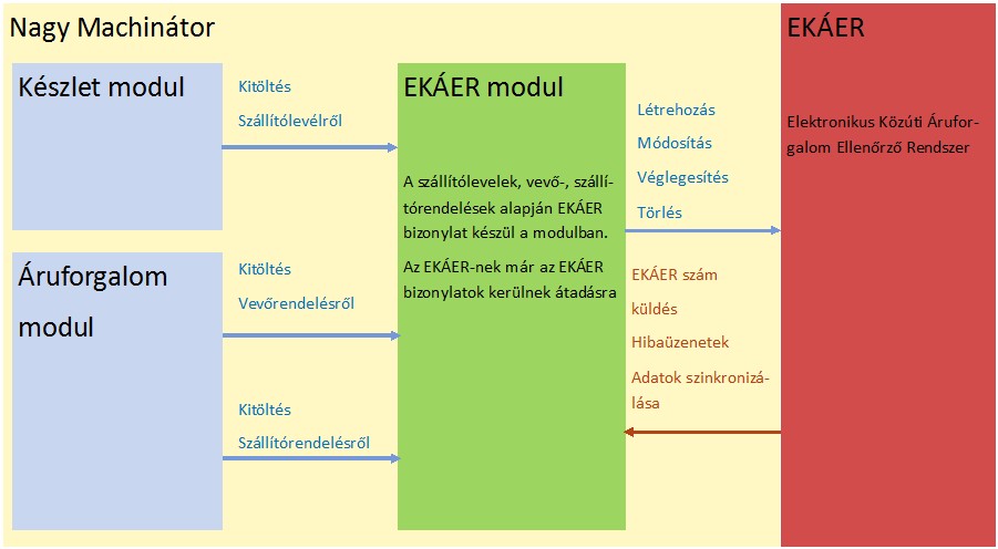 A modul szervesen integrálódik a Nagy Machinátor készlet, komissió, fuvarszervezés és áruforgalom moduljaihoz.