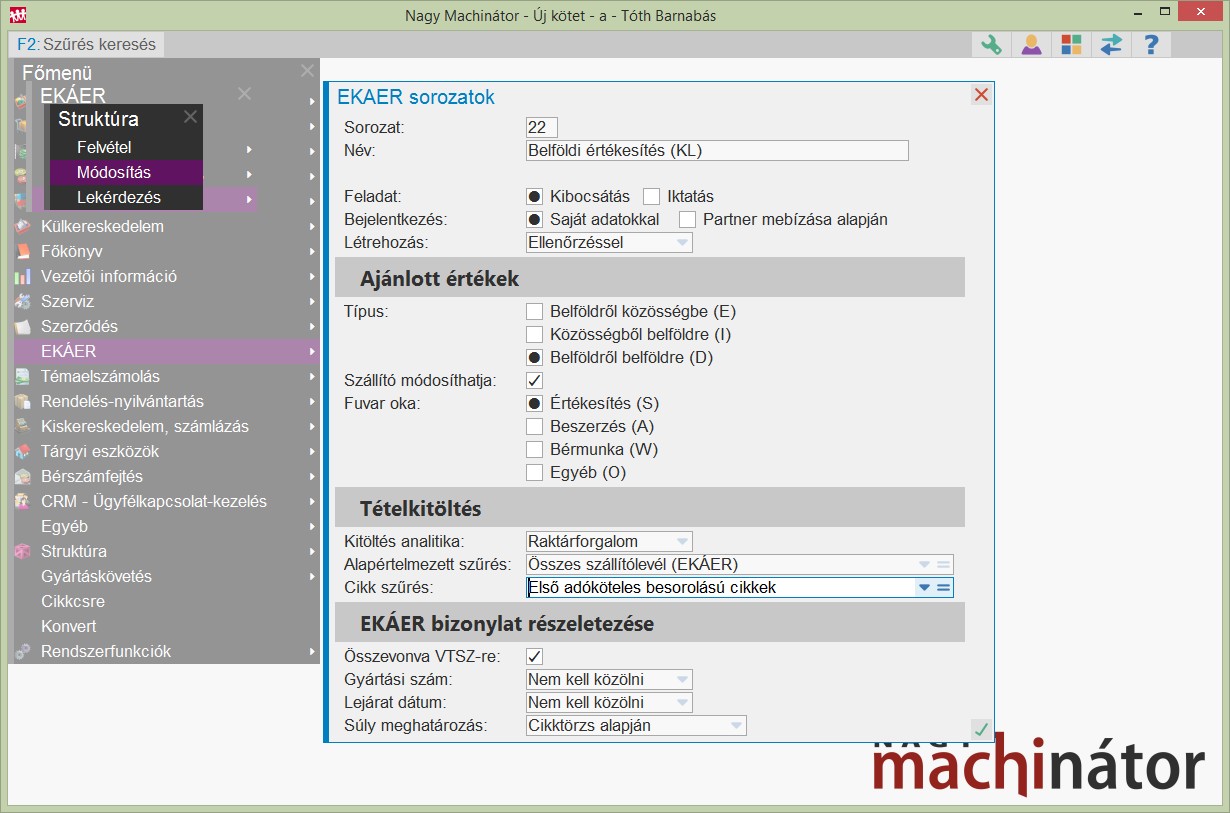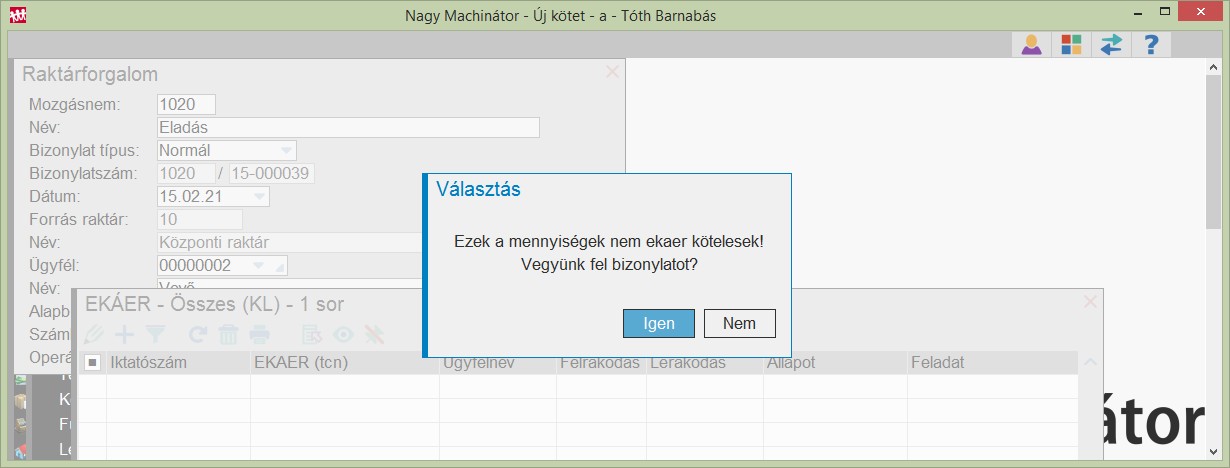 Amennyiben szükséges a program megpróbálja eldönteni, hogy kell-e EKÁER bizonylatot létrehozni.