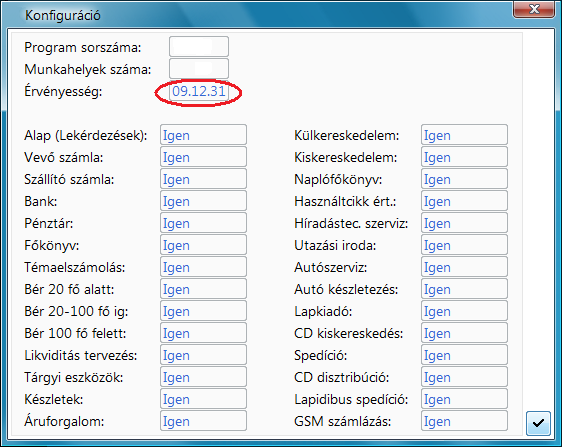 1)Első lépésként ellenőrizzük a program érvényességének dátumát, melyet a főmenüben a SHIFT+F1 majd F5-ös billentyű (régi programverzió esetén az F5 helyett F4) megnyomása után a konfiguráció ablakban láthatunk.