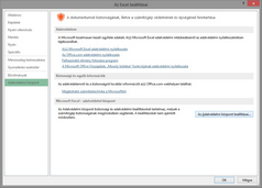 A beállításokat az Excel-en belül az Adatvédelmi központban, a Továbbfejlesztett fájlblokkolás területen állíthatja be; ezáltal a blokkolt fájlok is megnyithatóvá, szerkeszthetővé és menthetővé tehetők.