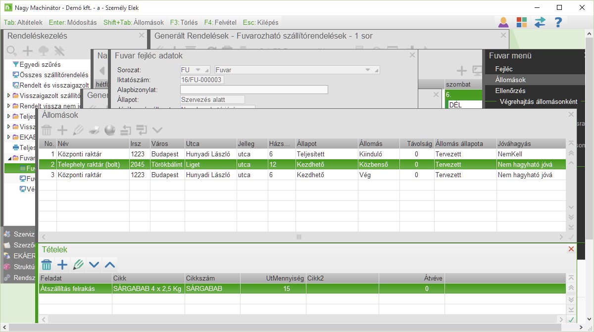 Fuvar végrehajtásaElindul a fuvarvégrehajtása folyamat - > Részletek