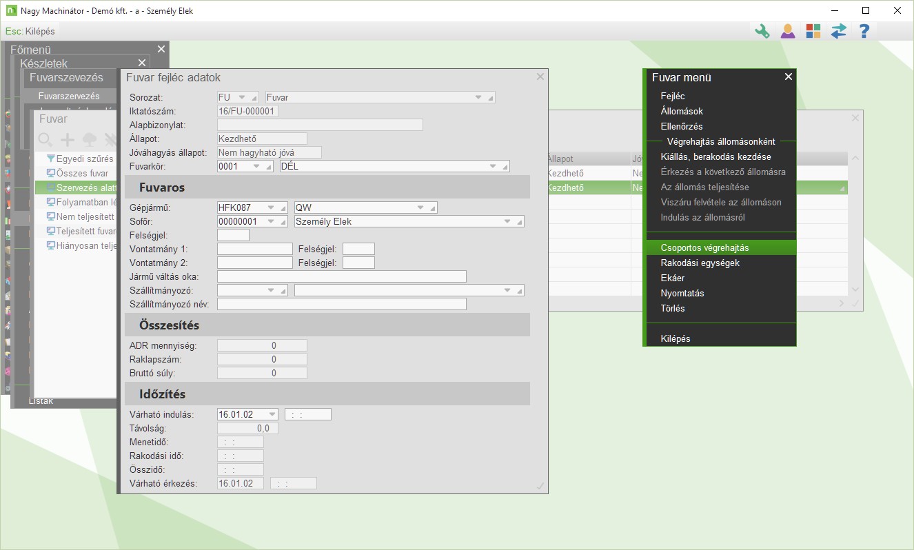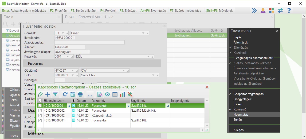 Amennyiben az Ügyfélszolgálat lezárta egy fuvar szervezését és a raktár minden árut kitárolt a komissió térbe, megkezdődhet a fuvar végrehajtása.