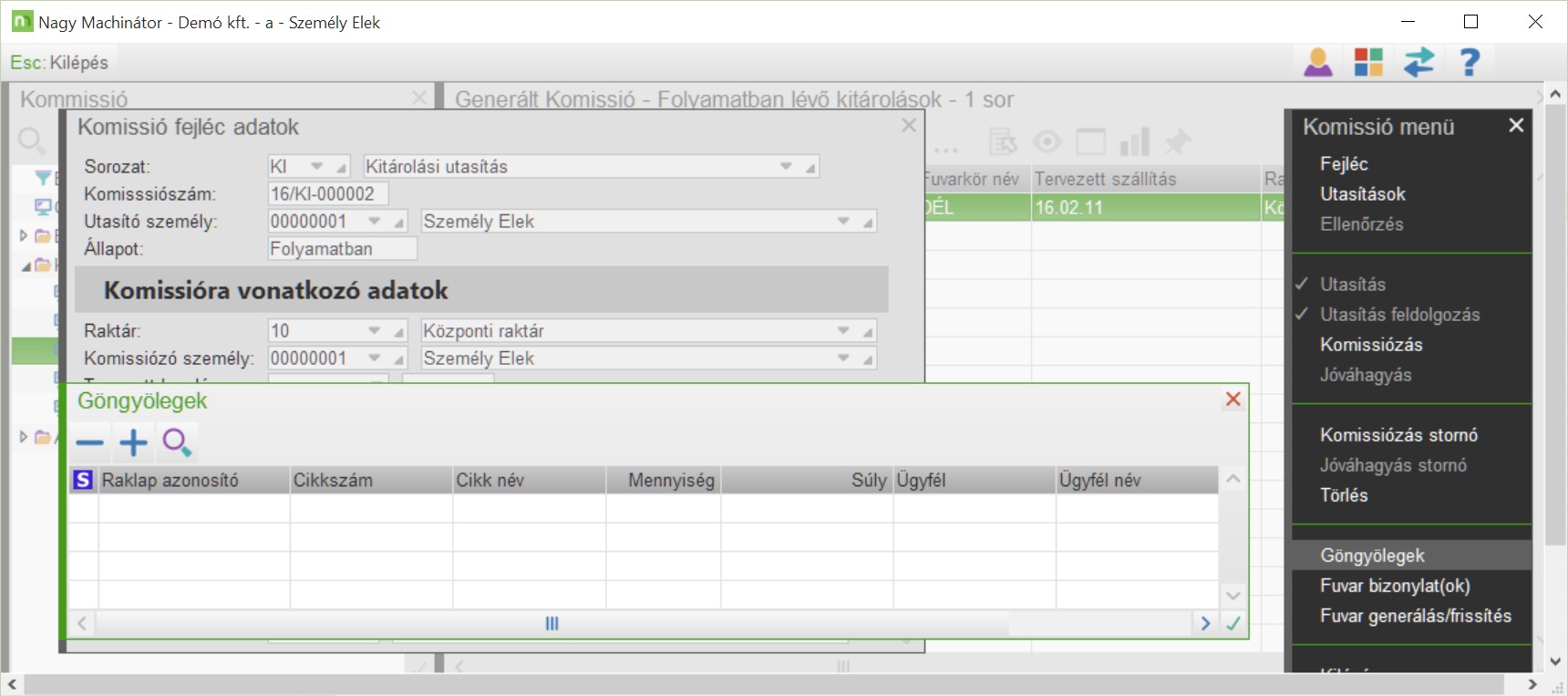 A komissiólezárása után a göngyöleg a göngyöleg tárolóból kikerül a komissiótérbe és a göngyöleg rákerül a fuvarra |