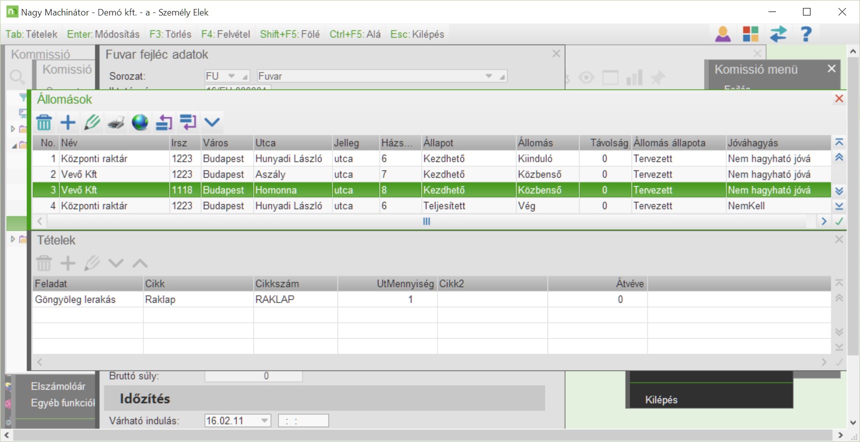 Göngyöleg lerakása a fuvarrólA fuvaron a komissióban kiírt mennyiség fog megjelenni