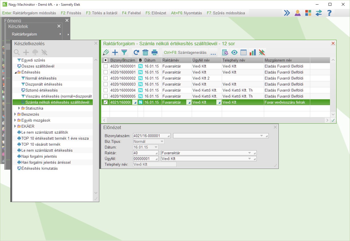 Számlázatlan vevővisszáruk lekérdezése