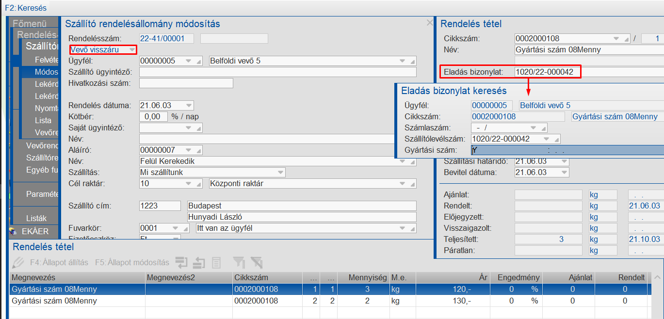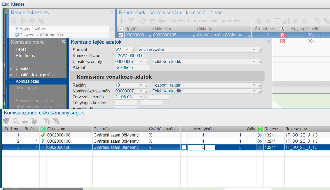 BetárolásA betárolás során a konkrétan megérkezett visszáru mennyiségét meg lehet adni.