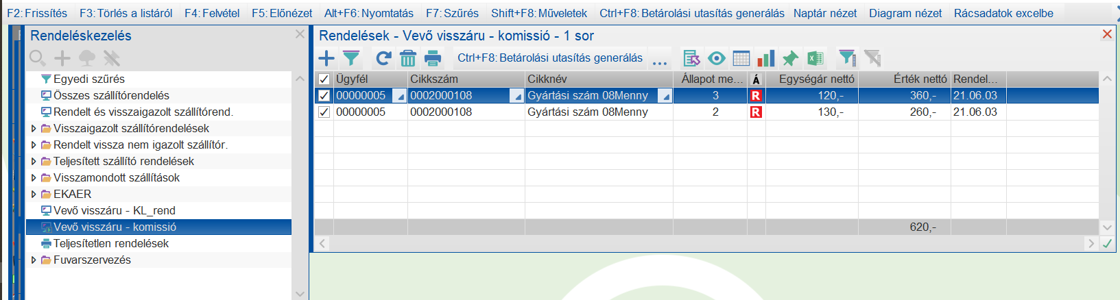 Visszáru beérkeztetésAmikor a megérkezik az áru, a raktárvezető lekérdezi a vevői visszáru igényeket és ezek alapján elindítja a betárolási utasítást.