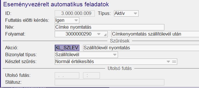 Javasolt az eseményvezérelt feladatban beállítani, hogy tegyen fel kérdést a futtatás előtt, hiszen nem biztos, hogy minden szállítólevél nyomtatása után akarunk GS1 Databar címkéket is készíteni.