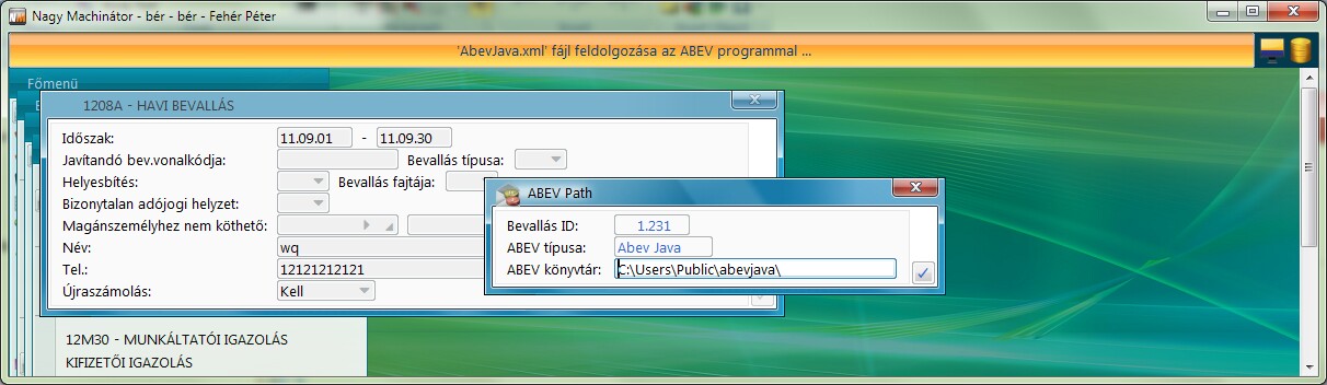 2, A Nagy Machinátor Temp könyvtárába legenerálja a feldolgozandó xml-t: AbevJava.xml
