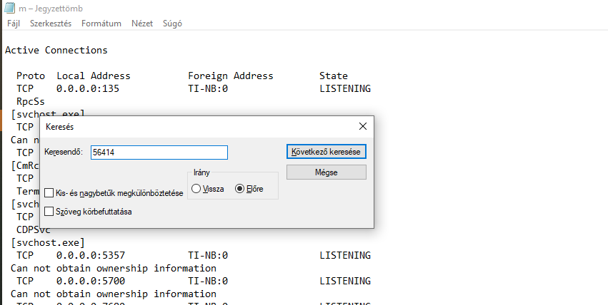 Az alábbi paranccsal az m.txt állományba kerülnek a használt portok: