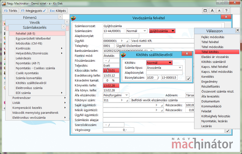 Az adott ügyfél nyitott (még nem nyomtatott) gyűjtőszámláját módosítani kell és az aznapi szállítólevelekkel ki kell tölteni, majd lezárni.