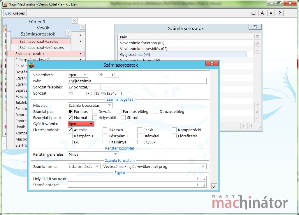 A gyűjtőszámlához használt számlasorozatot előre fel kell venni. Ajánlott külön sorozaton vezetni a gyűjtő számlákat.