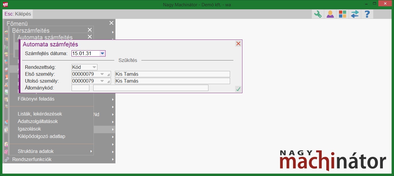 El kell indítanunk az automata számfejtést, amely az órakódok alapján (a bennük meghatározott jogcímekre) fogja elvégezni a számfejtést.