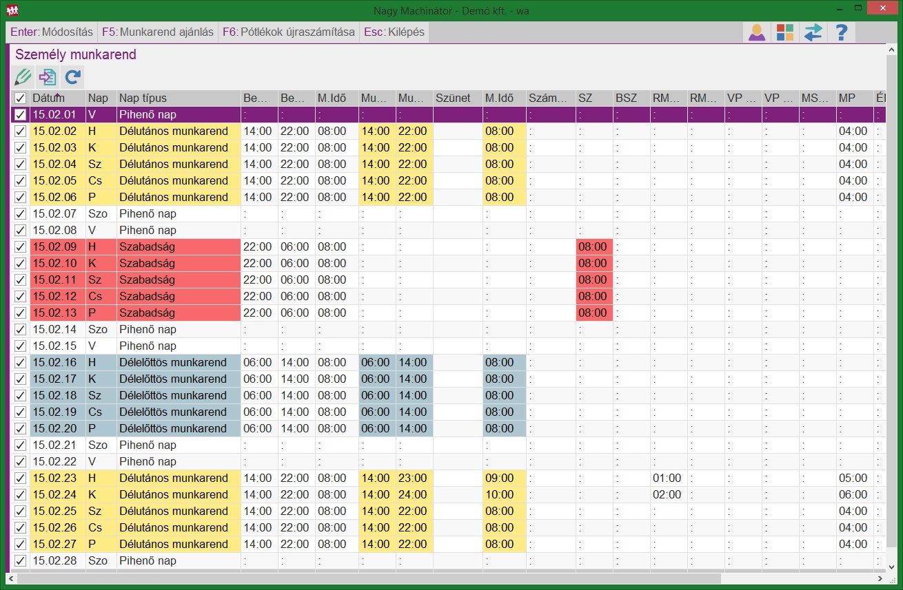 - azon napok naptípusát, ahol a dolgozó szabadságon volt, át kell állítanunk, ekkor a program annyi óra szabadságot fog adni a dolgozónak, ahány órára be lett volna osztva.
