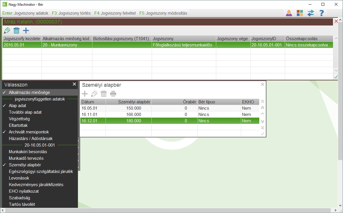 A dolgozó bére 2016.11.14-től megváltozik, az új alapbére: 180.000 Ft
