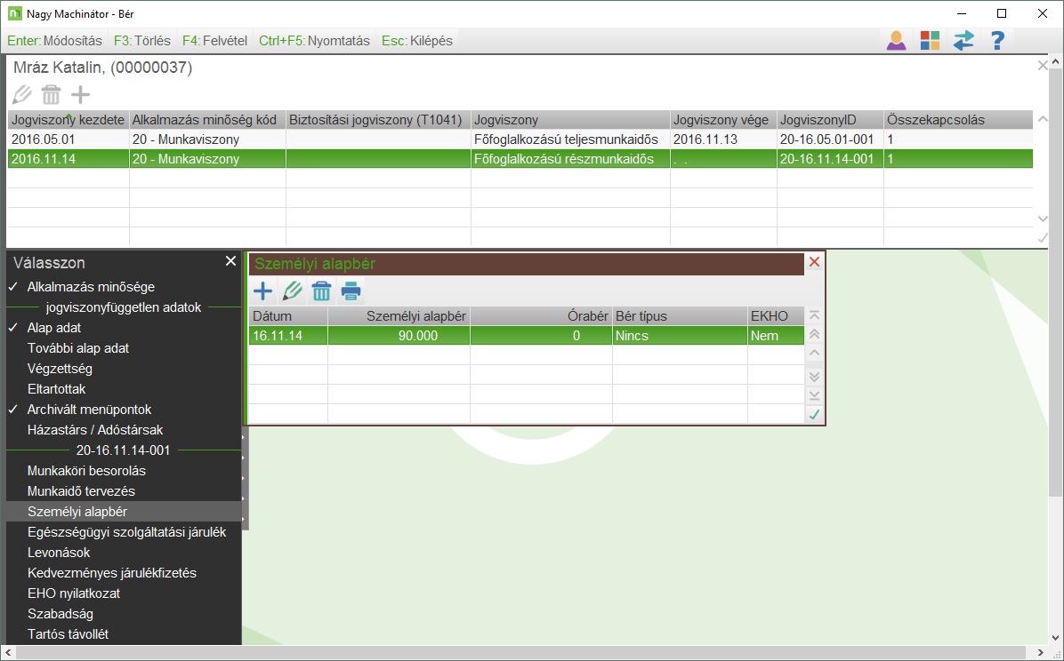 A dolgozó bére 2016.11.14-től megváltozik, az új alapbére: 90.000 Ft.