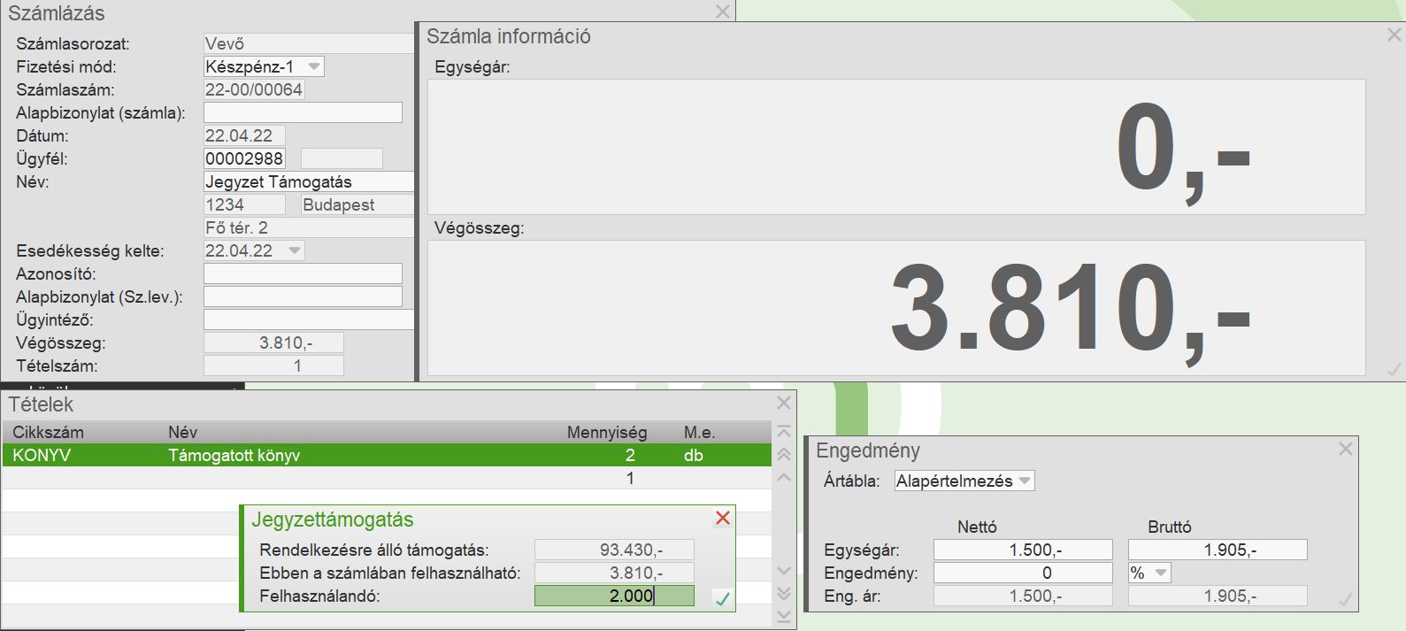 A funkcióval lehetőség nyílik támogatási összeget rögzíteni vevőkhöz, és azt rendeléseken keresztül, vagy önállóan a forintos vevőszámlázás során felhasználni.