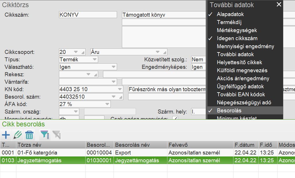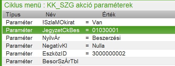 Azokra rendelésekre/számlákra fog a program támogatást számolni, melyekben olyan cikkek (is) vannak, melyek abba a cikkbesorolásba tartoznak, ami a JegyzetCkBes menüparaméter értékében meg van adva. A paramétert érdemes a főmenühöz tenni.