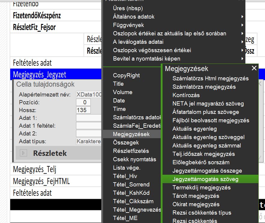 A formázott számlaképen megjegyzés hivatkozásként lehet kitenni a támogatás számértékét vagy a számértéket is tartalmazó szöveges leírást.