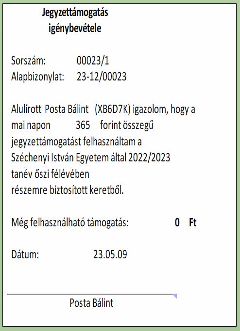 Felhasznált jegyzettámogatás összegének elfogadása: