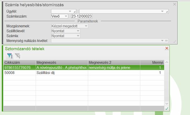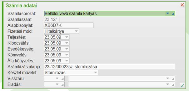 Számla adatai ablak elfogadása után elkészül a sztornó számla: