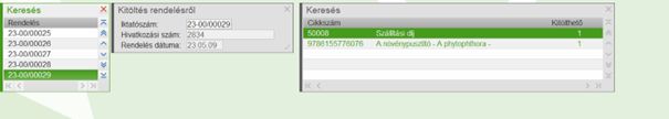 Kitöltés rendelésről funkció (Shift+F6) indítása: