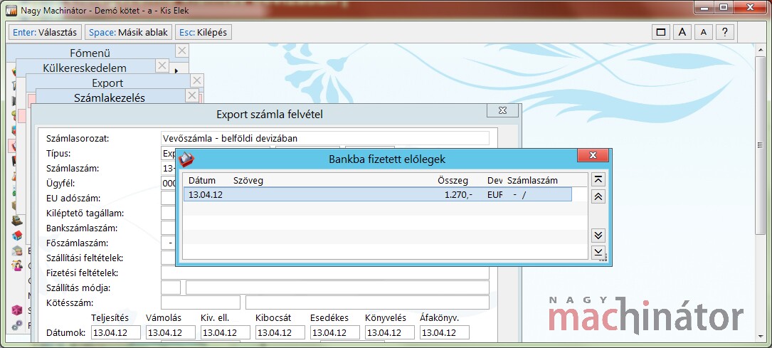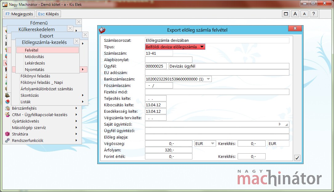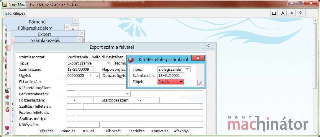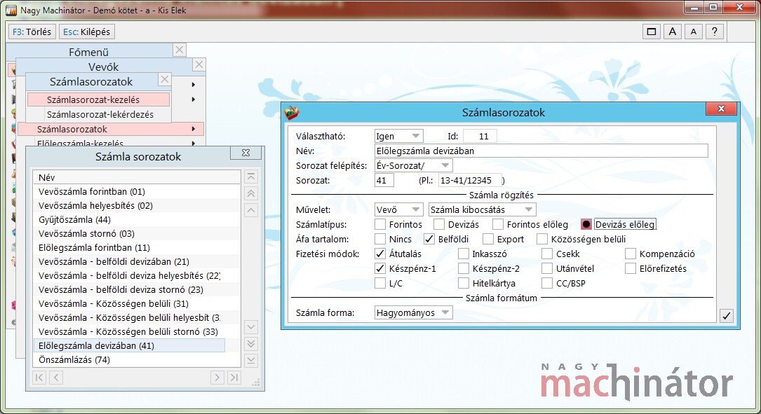 Számlasorozatok funkcióban devizás előleg típus definiálása