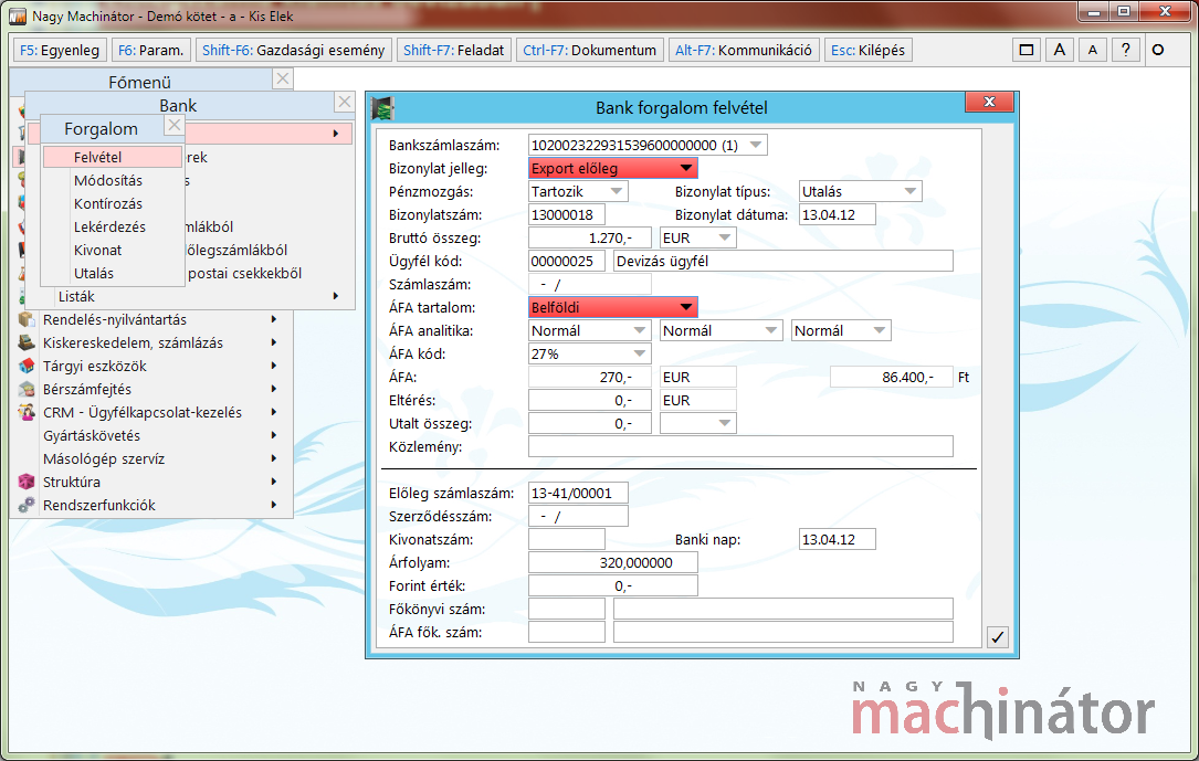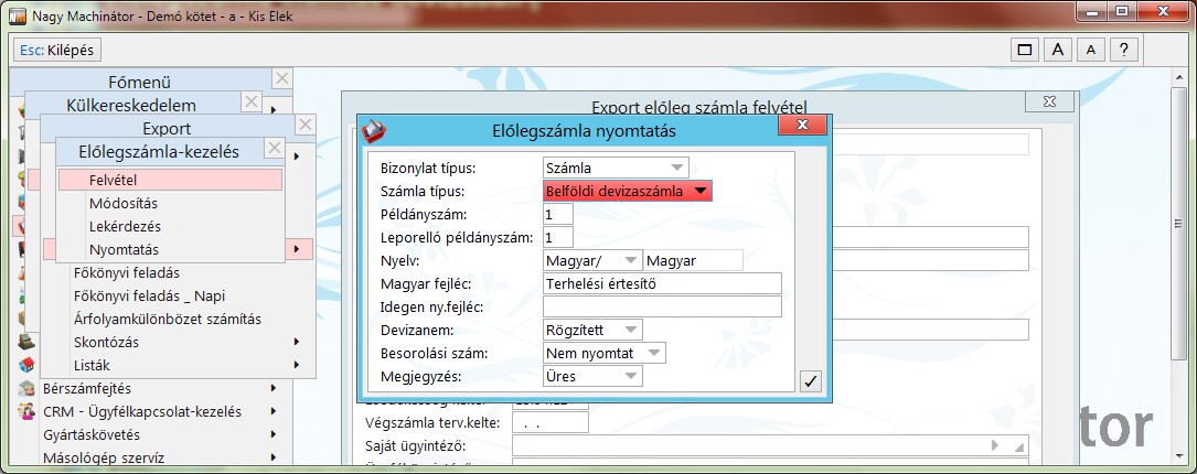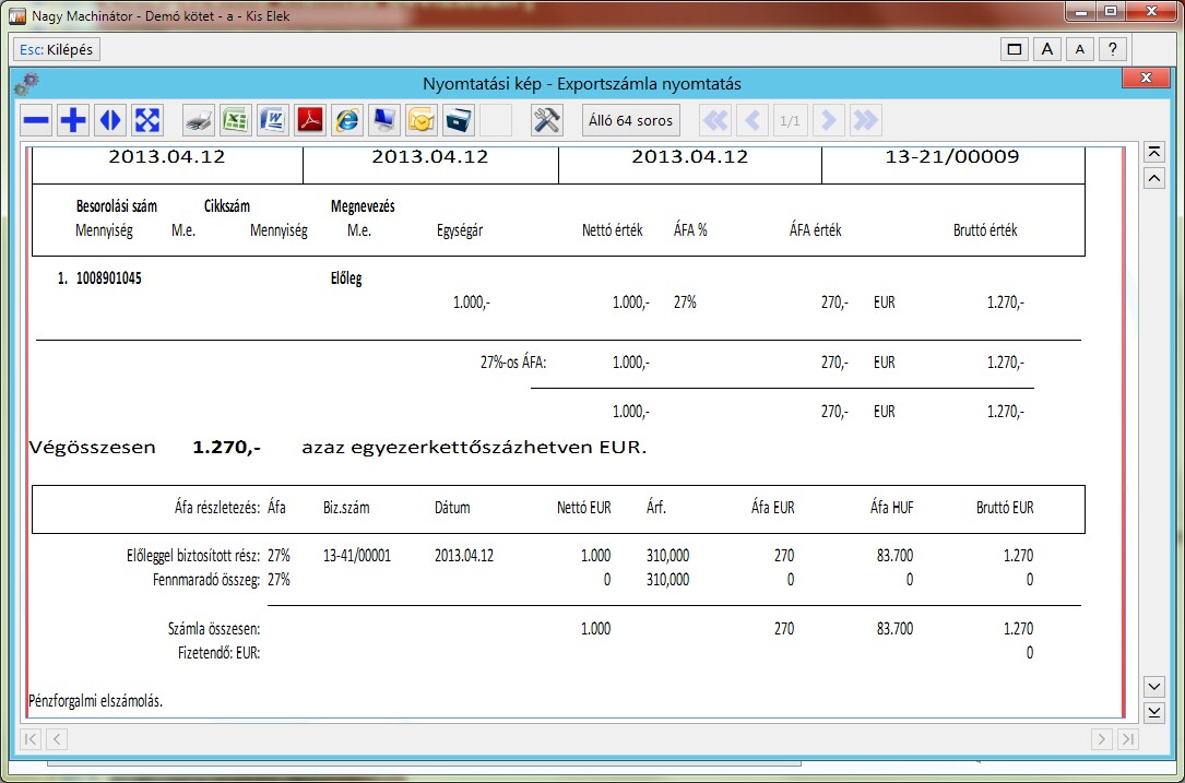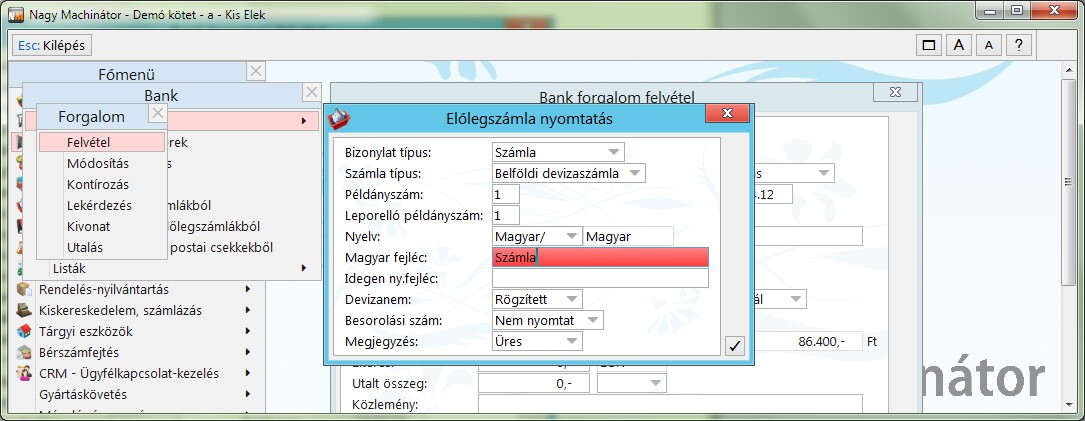 A bank rögzítése után automatikusan elindul az előlegszámla nyomtatása.