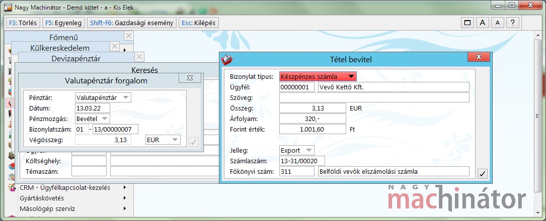Továbbá előfordulhat, hogy egy közösségen belüli vagy belföldi devizás értékesítésre euróban készül a számla és forintot fogadnak el fizetésként vagy euróban fizetnek, de forintban adnak vissza. Ezeket a gazdasági eseményeket az alábbiak szerint kezeli a program.