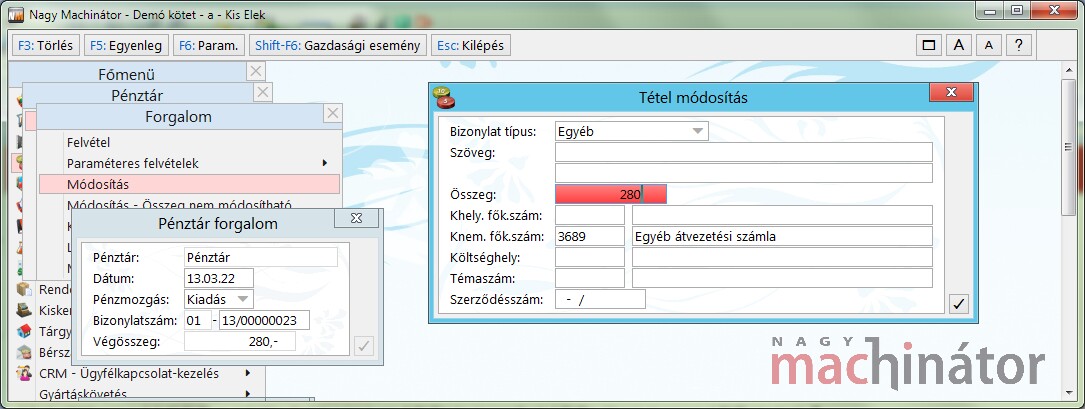 - Akinek a forint- és valutapénztárát is programban tartja nyilván be kell állítania, hogy a Forintpénztárban és a Valutapénztárban is van Pénztártétel generálás.