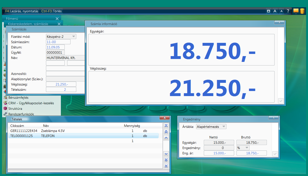 - Belföldi forint vagy devizaszámla számla kiállításával párhuzamosan a raktárkészletet is karbantartja a program.