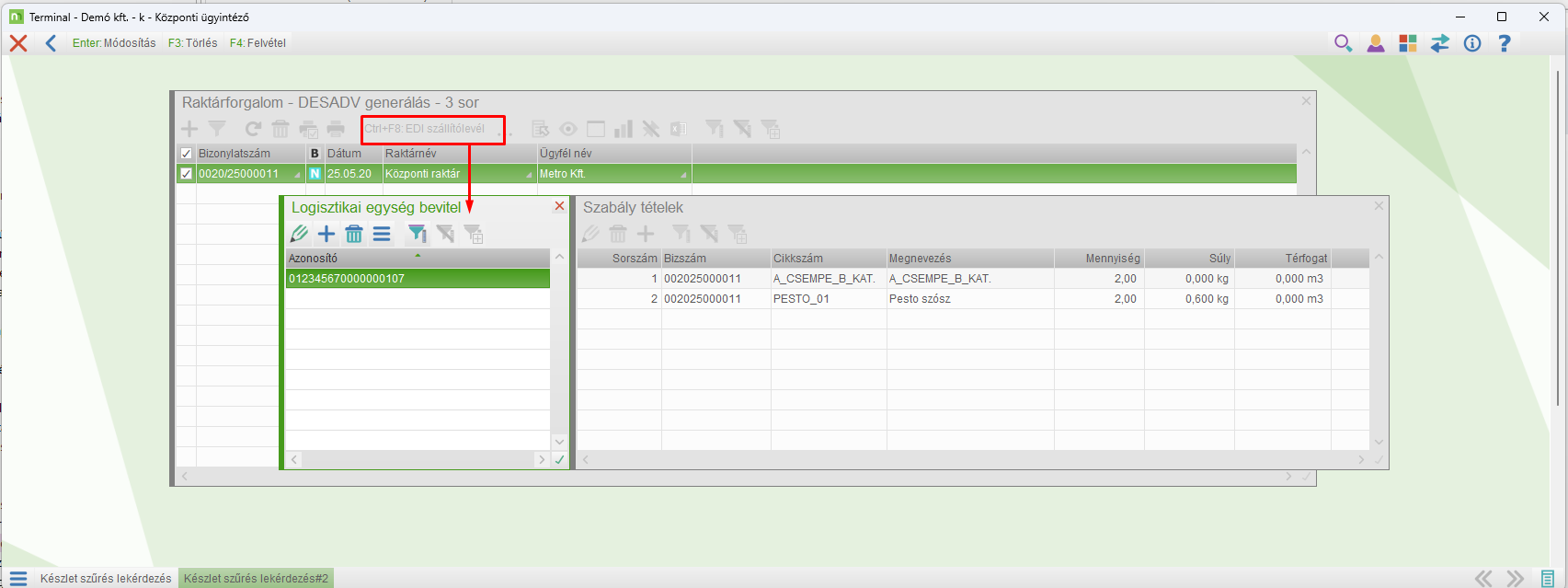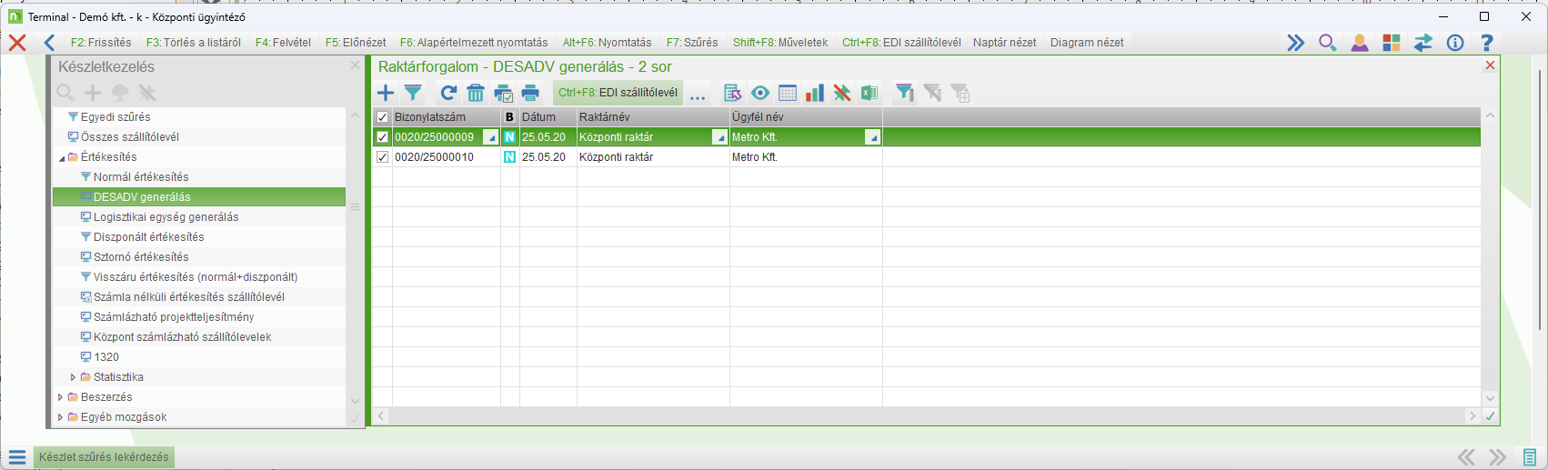 Ezek után ugyanúgy megjelenik az elkészült szállítólevéllel egy táblázat, amiből lehet készíteni a DESADV-t. lásd feljebb