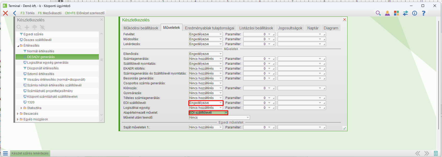 A Vevőrendelés kezelés művelte elindítása után a Kiszállítás (Kiszállítás, számlázás) művelettel tud elkészülni a szállítólevél.