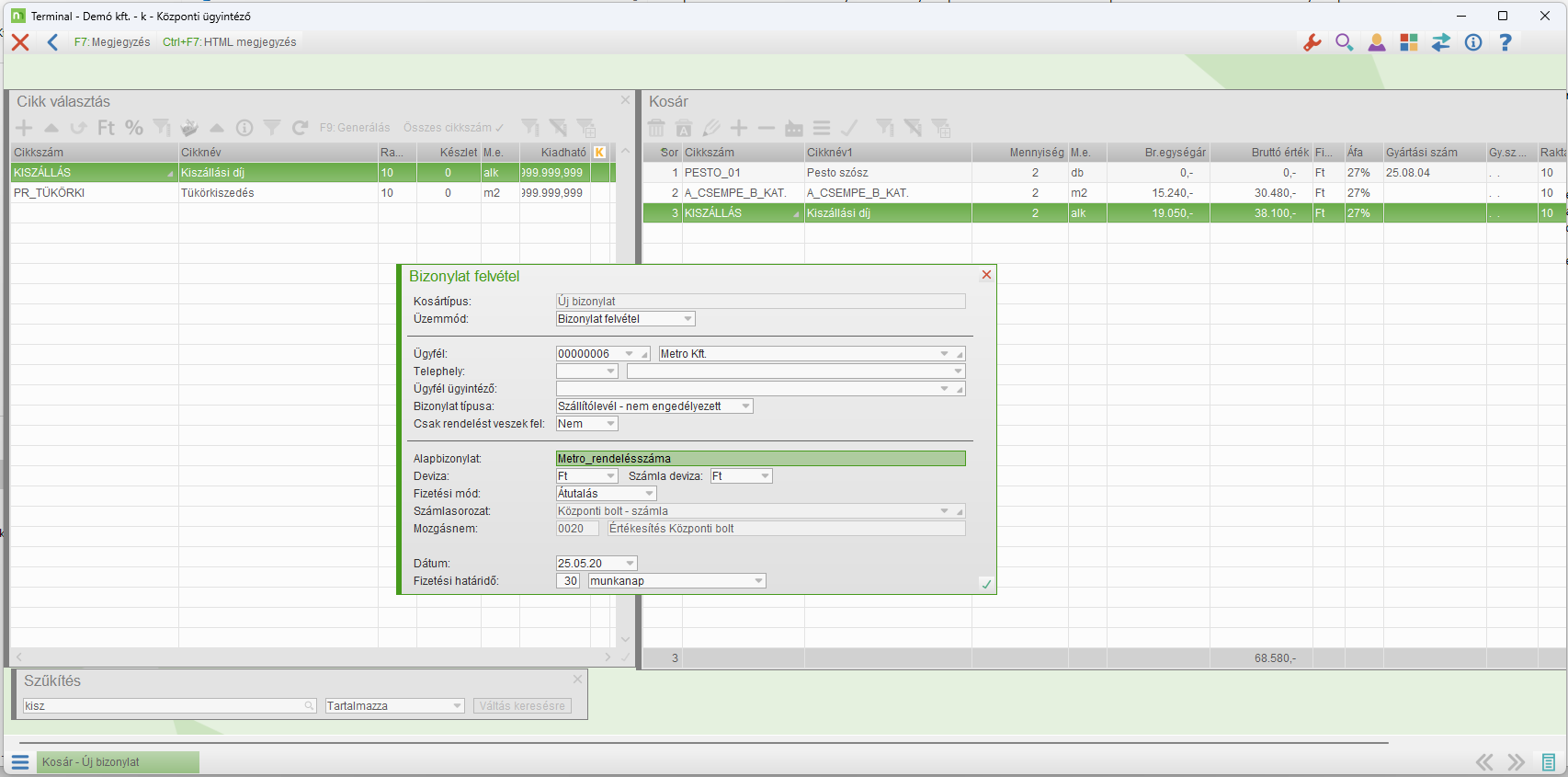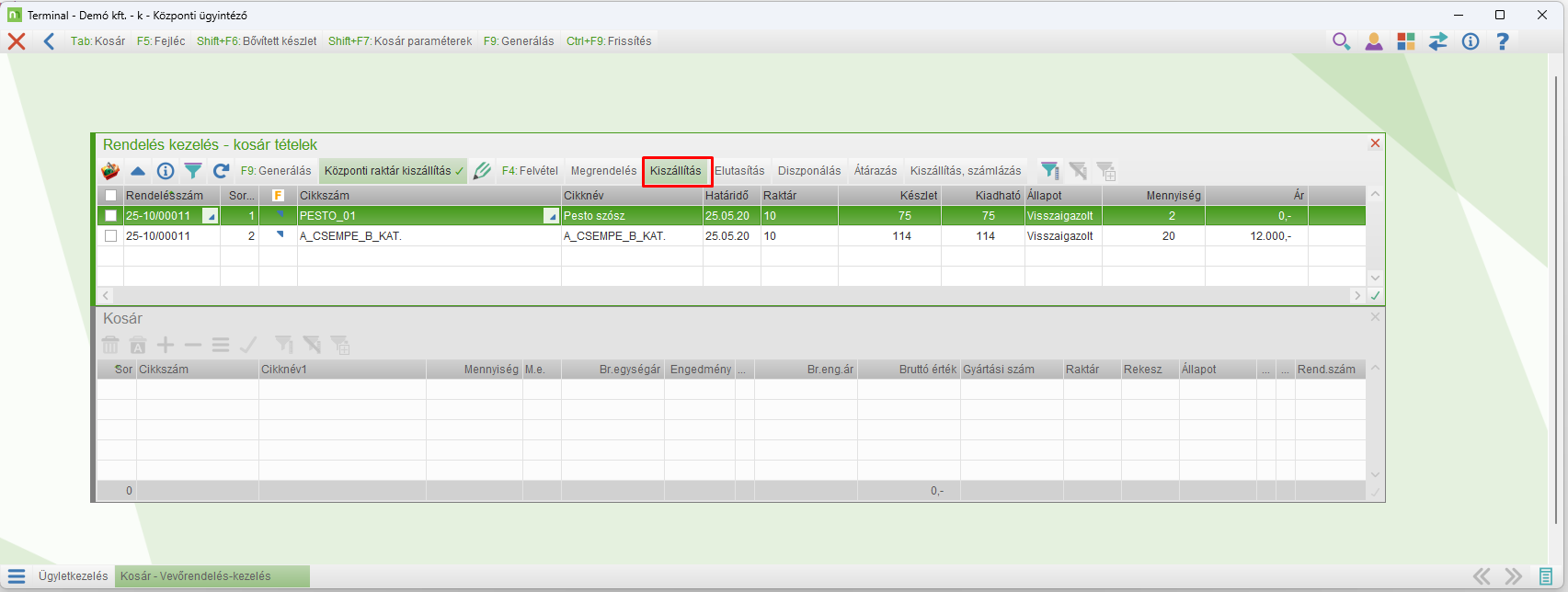 Amennyiben a rendelést kézzel rögzítik fel és a szállítólevél is egyből ekészül, a Kosár funkció használatát ajánljuk. -> Bővebben